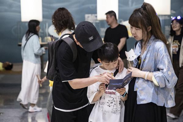 家长带着孩子一起探寻自然博物馆的神秘之夜。