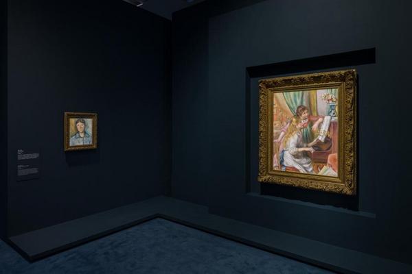 展览同时呈现了奥古斯特·雷诺阿与保罗·塞尚——两位风格殊异却同为印象派转型关键人物的代表作品。雷诺阿的《钢琴前的女孩》是其首件被纳入法国国家收藏的画作,描绘了两位沉浸于音乐中的少女。该作不仅静态地呈现了演奏瞬间,还仿佛传递出音乐的律动,唤起视觉与听觉的双重感知。作为“现代主义之父”的塞尚则在《塞尚夫人肖像》中展现其后期风格的核心特征——以密集笔触构建色调变化,通过简化造型与视角的不断调整,引导观众进入纯粹、静谧而深邃的观看体验。