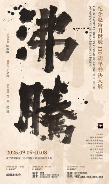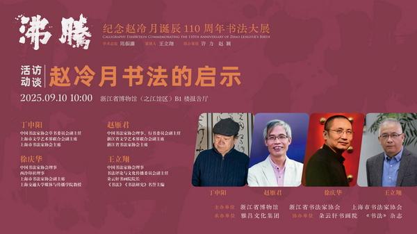 据悉,“沸腾——纪念赵冷月诞辰110周年书法大展”于即日起至10月8日在浙江省博物馆之江新馆举行。展览期间还将举办系列学术活动,推出著名书法家丁申阳、赵雁君、许洪流、徐庆华对话访谈,并举行多场公共导览服务。深入探讨赵冷月先生的书法艺术及其对当代书法的启示。