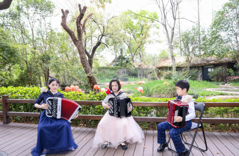 穿着粉色蓬蓬裙的伊文眼里满是光亮,她跟着爸爸妈妈来上海旅游,动物园是这个春假最后一站。“我喜欢火烈鸟,它们的羽毛很漂亮。能和它们一起站在湖边听歌,还挺有意思的。”问她觉得火烈鸟能欣赏手风琴吗?她说:“当然可以,很多小鸟唱歌就和手风琴一样好听。”