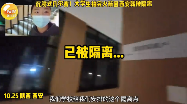 大学生拍完火箭回西安就被隔离 隔离点环境太好大型凡尔赛现场