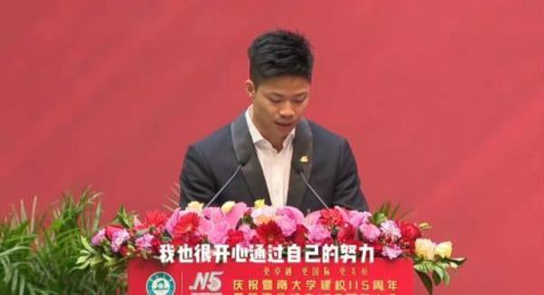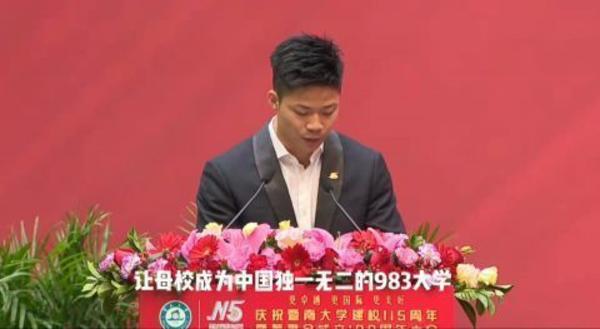 苏炳添在演讲中说:“我很开心通过自己的努力,让母校成为中国独一无二的‘983大学’。”