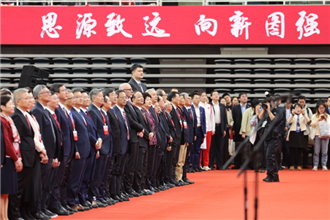 思源致远,向新图强,主会场悬挂的五星红旗,正是2006年上海交通大学110周年校庆日在天安门广场升挂的那一面。4月8日,上海交大在闵行校区霍英东体育中心集会纪念建校130周年。
