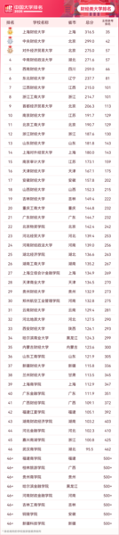 财经类大学排名的上榜高校有54所,上海财经大学、中央财经大学、对外经济贸易大学位列前三。