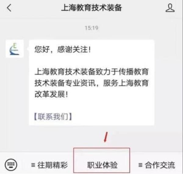 报名方式:关注“上海教育技术装备”公众号,点击菜单“职业体验”进入报名。