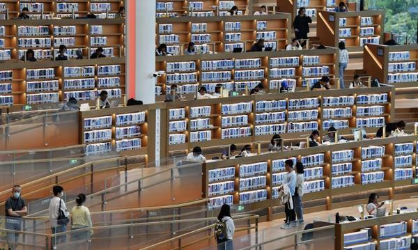 市民在北京城市图书馆内读书。新华社记者 李欣 摄