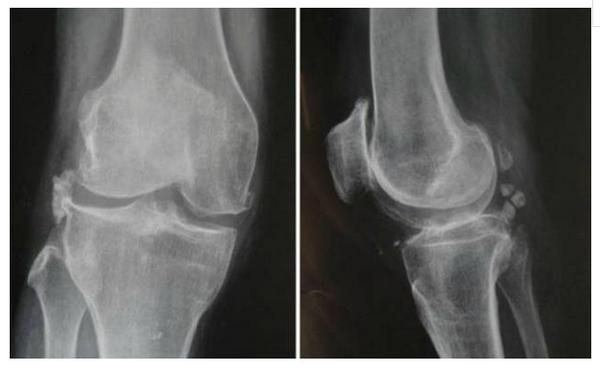 较高龄者(>55岁),大部分无诱因,突然发生膝关节剧痛,夜间痛明显,关节内注射糖皮质激素无效,股骨髁关节面上有压痛,活动度影响不显著。X线摄片显示股骨内髁骨缺损及透亮层。