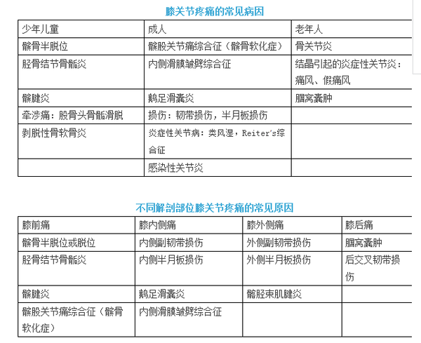 多发性、游走性,膝关节最多见,没有器质性病变,无运动损伤、无髌骨不稳定。鹅足部、内侧关节间隙有压痛。大多双侧,可自行消失,有人认为与内分泌因素有关。有些误诊为半月板损伤或髌骨软骨软化症而做手术,但术后症状依旧。