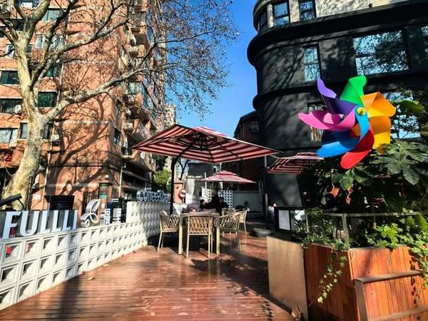 由北向南漫步陕西南路,路过明复图书馆后,视野豁然开朗。阳光、彩虹、绿植、长椅、遮阳伞……一个空间超大、充满设计感的外摆位闯入视野。这是位于陕西南路233号的fullli福里餐厅。