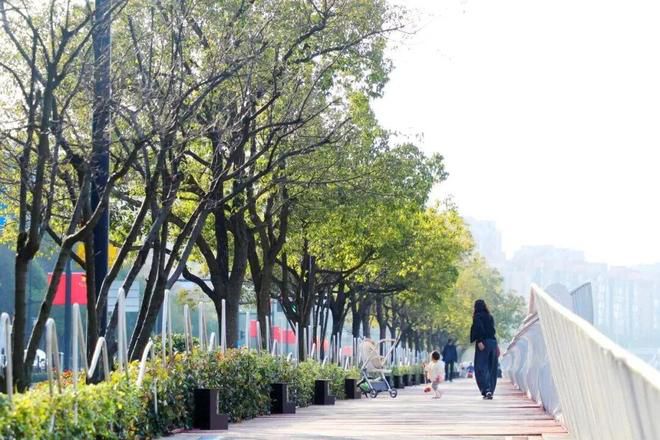 沿着万航渡路继续向西行走,苏州河的秀美风光与清爽的河岸线尽在眼前,极目眺望,视野开阔,令人心情舒畅。