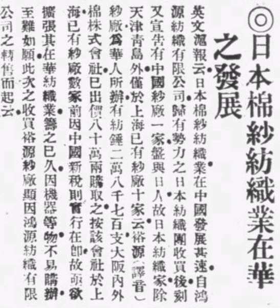 但在当时的历史条件下,民族企业的发展遭受到重重阻碍,很多企业无法继续经营,工厂不得不出售转让。1902年,日商的三井洋行上海分行经理山本条太郎率先收购了华商的兴泰纱厂。1906年,又收购华商大纯纱厂,并改名为“三泰纱厂”。