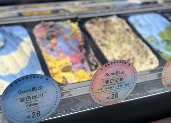 娃们几乎人手一个的爆款冰淇淋就是在这里卖的,颜值极高,蓝色的“蓝色冰川”冰淇淋是柠檬奶酪味,粉色的“春日花海”是芒果海盐椰子草莓和蓝莓混合口味,既能解馋又能拍照。