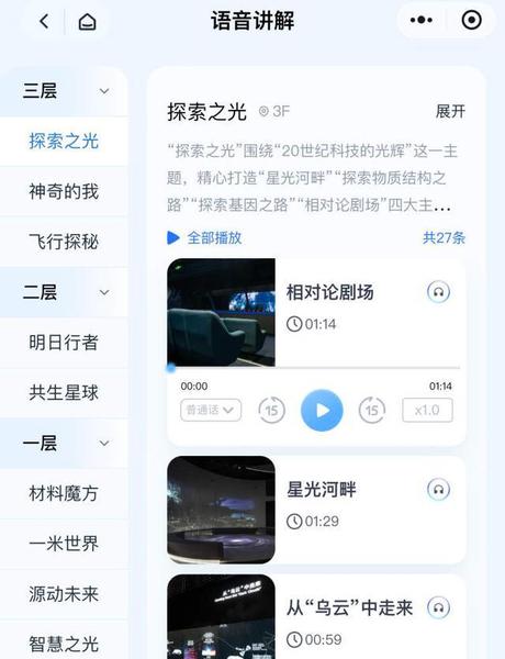 第三种则是免费语音讲解,这个很多人不知道,“上海科技馆”小程序里有超过300条展项讲解,完全免费!