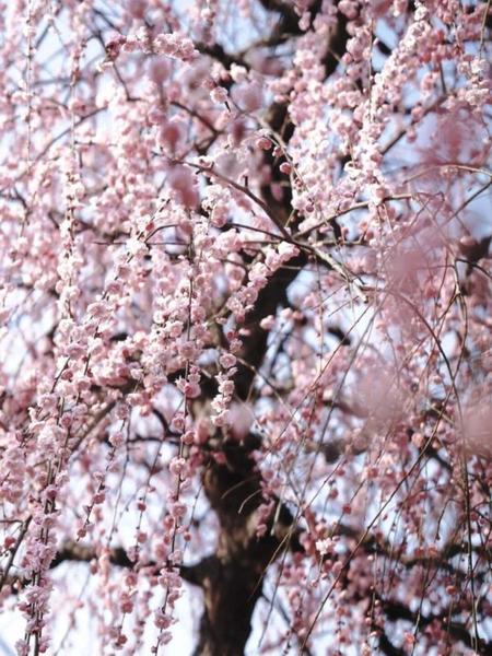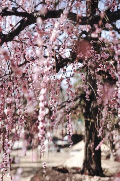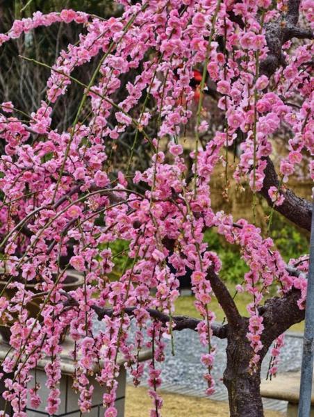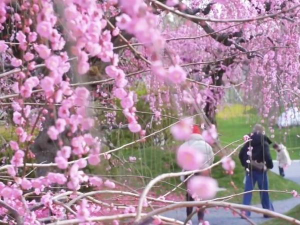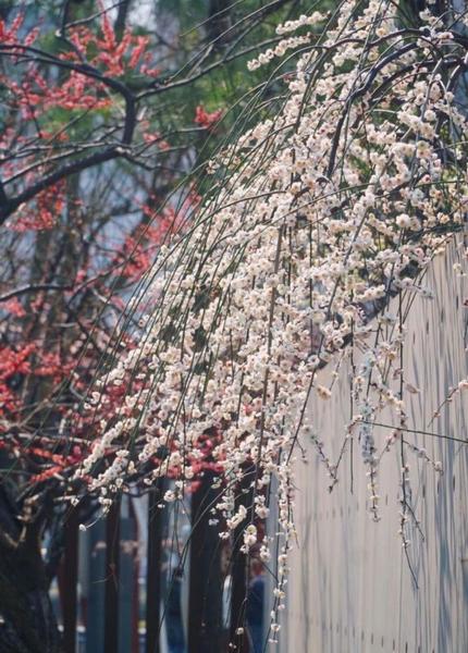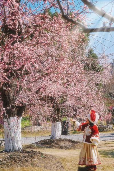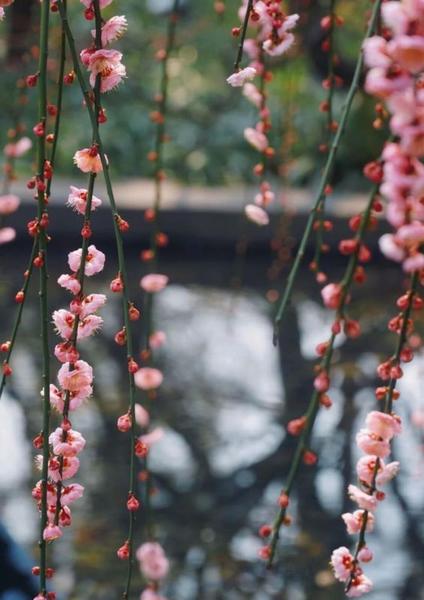 不想远走,在市中心就能赴一场垂枝梅之约。沿公园小径漫步,远远就能望见垂枝梅景致。