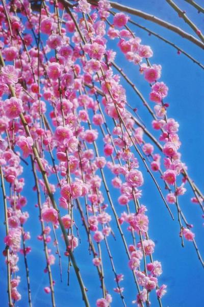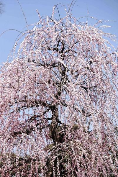 枝条如柳丝自然垂落,花开时似粉色云瀑倾泻,风过处花瓣簌簌飘落,连泥土都染上梅香。
