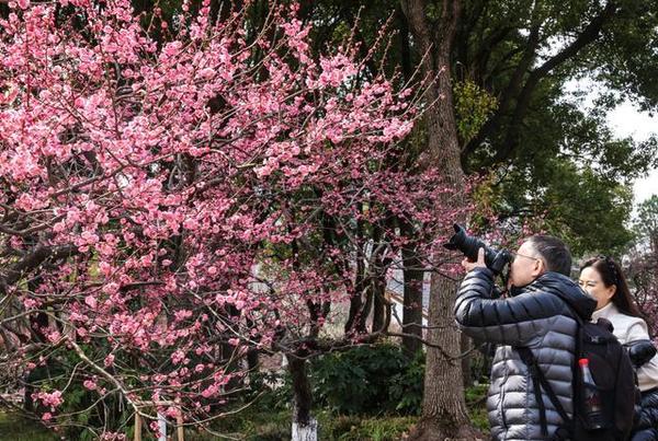 随着梅花盛花期进入尾声,世纪公园内晚梅品种“美人梅”即将迎来最佳观赏期。