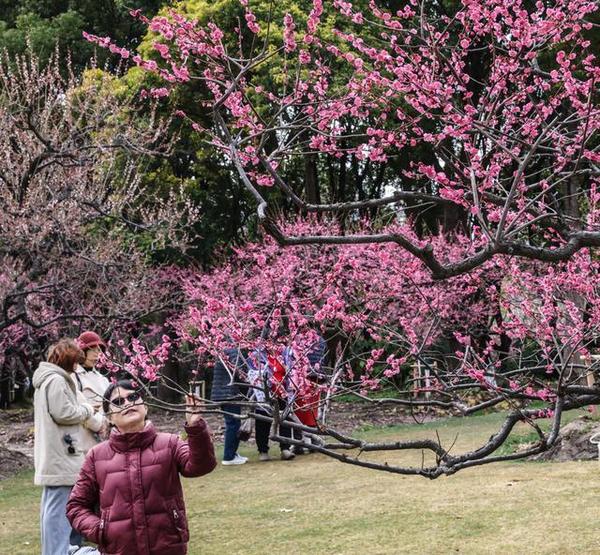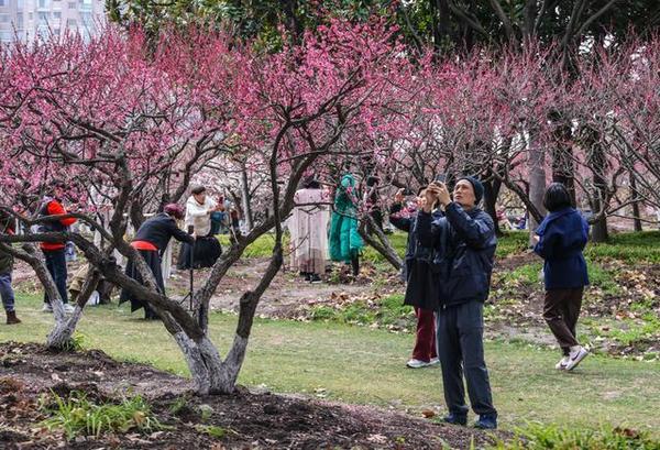 为丰富市民赏梅体验,公园在春节前特别引进两株树龄百年的珍稀梅树——6.5米高的“骨里红”与4.5米高的造型垂枝梅,两株梅树经园艺师精心选址与景观设计,现已在公园核心观赏区形成错落有致的立体景观。