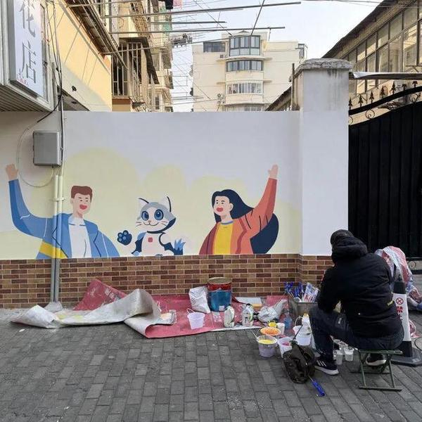 墙面穿上“花衣裳”:珍惜粮食、热爱生活、自然生态等主题墙绘色彩明快,不仅好看还传递正能量;