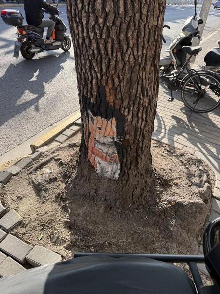 老树变身“艺术品”:修剪后的树木不挡光、无隐患,创意绘画让老树干成为街头小景;
