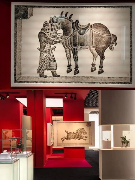 展览甄选来自甘肃省博物馆、甘肃省文物考古研究所、咸阳博物院及上博馆藏的16件/组马主题文物,分为“鞍马征尘”“昭陵六骏”“骏影流光”“诗情画意”等版块,展现中华马文化的多元内涵与吉祥寓意。