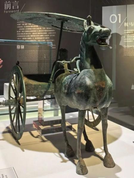 观众可以在其中邂逅与“马踏飞燕”同出于武威雷台汉墓的青铜车马,感受汉代车骑仪仗的赫赫威仪;欣赏凌空踏云的玉仙人奔马,品味汉代玉雕中的灵动神韵;近观出自吐谷浑墓葬的唐代骑马击鼓俑,领略丝路交往的生动瞬间;在徐悲鸿《饮马图》与张大千《临曹霸玉花骢图》中,体会墨韵流淌中的马魂风骨。