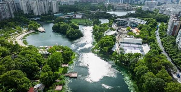 经过精心设计规划,如今,占地约17万平方米的新江湾城文体公园,成了市区里少见的一块“生态绿宝石”。这里依托独特的水域资源与优美的生态环境,规划了“文化、体育、公园、水上”四大片区。