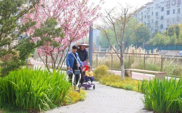 “我们设计时就想着,既要好看,更要让大家看得久。”城投集团汇胜水利的河道养护技术员沈良介绍说,张家塘的绿化升级特意以木本植物为主,不仅初期更新成本低,后期养护也省心,“不用频繁换花,也能让岸线四季有景——春天有花、夏天有叶,秋天有果、冬天有枝,走几步就能撞见不一样的惊喜。”