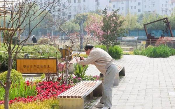 家住华东花苑799弄的汤国梁,退休后时常到楼下的张家塘步道散散步、拍拍照。“以前这一片杂草乱树长得密,看着闹心,谁能想到能改成这样的好去处。”汤国梁脚步轻快,沿着步道往前,满目的花簇撞入眼帘。垂丝海棠的粉白花瓣在风里轻晃,西洋杜鹃开得热烈,大红、玫红的花团把步道染成鲜亮的色块,连脚边的草叶都带着蓬勃的绿意。他笑着说:“春天一到,花开得这么艳,走一圈都觉得浑身舒坦,住在这儿,真的觉得很幸福。”