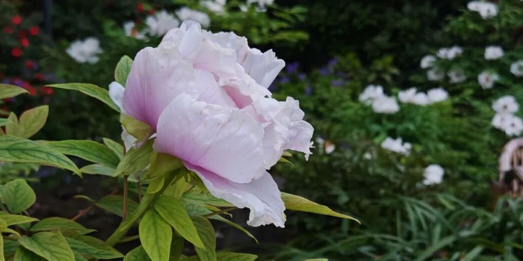 眼下,园内牡丹肆意盛放,涵盖多个品种,其中“粉中冠”“种生粉”等树龄超60年的珍贵品种风姿独具,是园内赏景的亮点。白的淡雅、粉的娇艳、紫的华贵,层层叠叠的花瓣在晴好春光里舒展,微风拂过,花香萦绕,尽显牡丹雍容之美。