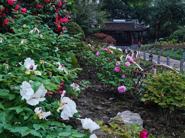 园内始建于1916年的牡丹亭,更是赏牡丹的绝佳之处,传统歇山式建筑搭配石狮雕塑,古意悠悠,与身旁盛放的牡丹相映成趣,不少市民闲坐亭中,在花香里静赏芳华,沉浸式感受古典园林的雅致韵味。