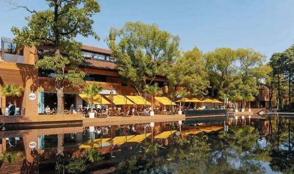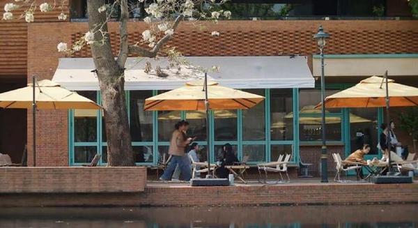 园区水池边的兰巴赫西餐厅也在剧里出现,剧里是胡羞闺蜜开的咖啡店。