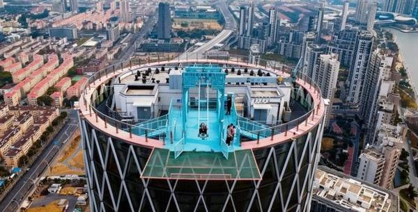 上海最高高空秋千正式解锁!宝山长滩观光塔180米云霄秋千直面长江入海口,摆动角度达60度时,仿佛“飞”向江海之间,解锁云端飞翔的极致快感。