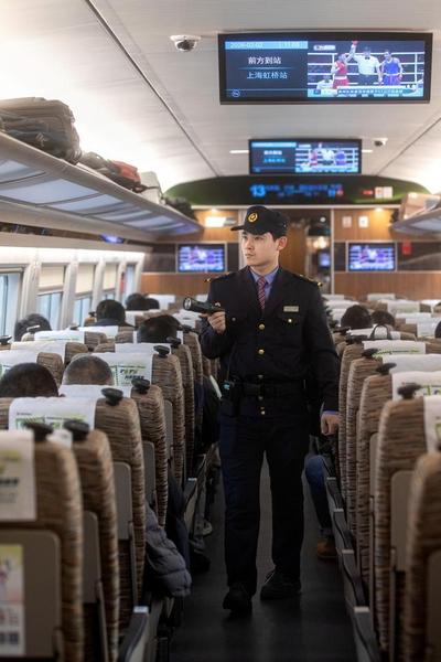 动车组机械师包括地勤机械师和随车机械师,他们分工明确,地勤机械师负责动车组回到检修库后的全面检修和维护,随车机械师负责动车组上线运行时的安全监控和应急处置。每天一大早四点,随车机械师就登上值乘列车,五点多,存车库里的动车就开始一列列驶往虹桥火车站,准备去往全国各地。随着春运来临,晚上是地勤机械师最忙的时候,一列列动车下班回家,需要进行日常保养和检修。这里就像一家巨大的高铁“4S”店,在进行了全方位清洗后,机械师就要开始上岗。