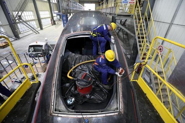 检修库里望过去,车顶、过道、车下地沟里,都有人在忙碌着。车顶受电弓、天线、内外风挡、空调扇叶、车底转向架,车端连接部、车体、外门、外显等设备检查都在4 人两两组队同步进行。平时,一列动车每运行9900公里就要进行一次“全身”检修。“我们采取12 小时连续作战、24小时两班交替的方式开展动车组一级修作业,做到精检细修、精细确认。”虹桥动车运用所夜班一级修工长张冬说。