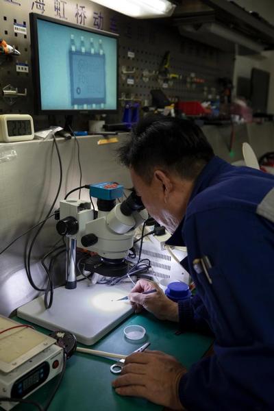 55岁的地勤机械师陶刚,正在对已报废的动车组受电弓摄像头进行翻修。自陶刚领衔的修旧立废工作室成立以来,在动车组头灯模块总成、客室灯带等十余项修旧利废工作中持续发力,为企业节约开支超千万元。
