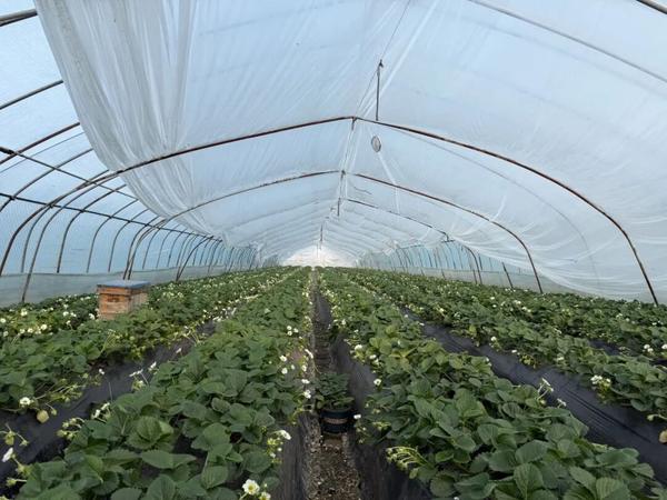 接着去凤冠草莓园 ,解锁春日限定甜!这里没有夸张的设施,只有整齐的传统暖棚和弥漫的草莓馨香。园主精心打理,棚内温暖干爽,垄道清晰,营造出一种亲切、放松的邻里式采摘氛围,让人仿佛回到过去在熟人地里帮忙采摘的时光。