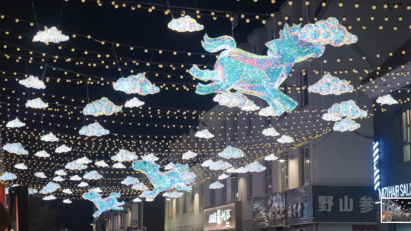 沿湖畔步道进入“九街烟火”区域,美兰西湖蜂巢艺术中心、中集·金地广场作为现代版“九街”代表,演绎古镇商业与生活烟火;“三爪守灯”灯组中,三爪石狮子守护新春,“一马当先送吉祥”灯组里,罗朵朵身骑宝驹,为2026马年送上美好祝福。
