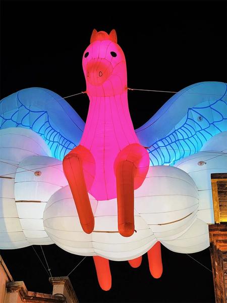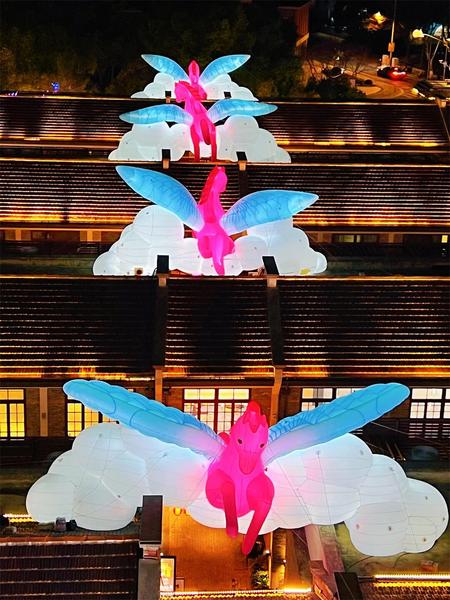 百年弄堂海派春节灯会将整个街区焕新为“骏马奔腾”的奇幻之境,“亮马生花”“骏跃瑶台”“驰梦甜爱”“驭马游春”等多组大型灯光艺术装置遍布弄堂,以“浪漫、鲜活、互动”为设计核心,将马的灵动、花的绚烂、春的暖意、节的热闹层层叠加,为市民游客打造沉浸式赏灯体验。