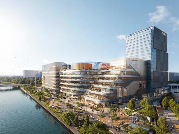 松江首座TOD商业综合体将于2026年第四季度正式开业!总建筑面积约20万㎡,购物中心为地下二层、地上六层设计,创新采用“MALL+街区”的双核形态与“水岸聚落+风尚秀场”的设计语言,并规划泗水Park、星空露台、潮巷等户外场景,将商业空间与生态、文化自然融合>