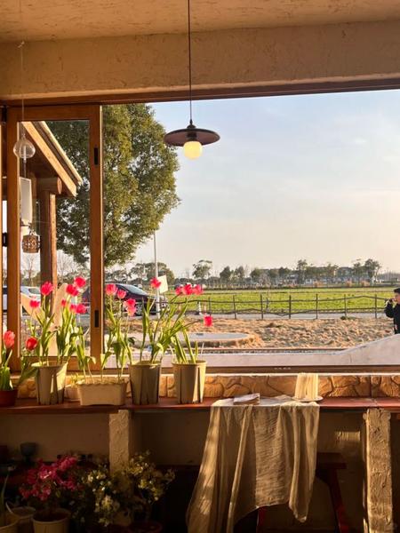 这是一家藏在松江区石湖荡镇乡村里的宝藏咖啡馆,春日主题布置已上线。