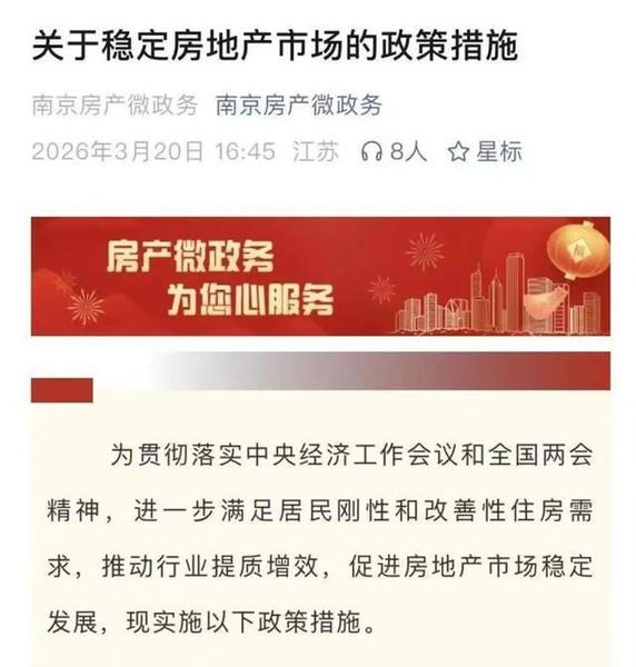 南京在“宁六条”中,对“以旧换新”政策进行升级。政策明确继续支持中介机构开展“帮卖”服务,并鼓励各类主体参与市场化“收旧换新”,同时对完成“卖旧买新”的购房人给予贷款总金额1%的贴息支持。贴息政策适用于自发布之日起至2026年12月31日期间完成置换的购房行为,且“卖旧”与“买新”不设先后顺序。房源范围也由此前的限定房源库扩大至全市所有新建商品住房项目。