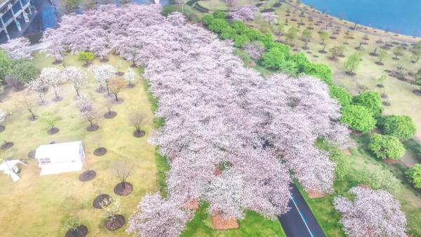 顾村公园目前120个品种、16000多株樱花已次第绽放,连绵延展,汇成1600余亩的浪漫樱海。尤其首创“景随花移”的夜樱模式,点亮全时段赏樱体验。
