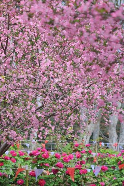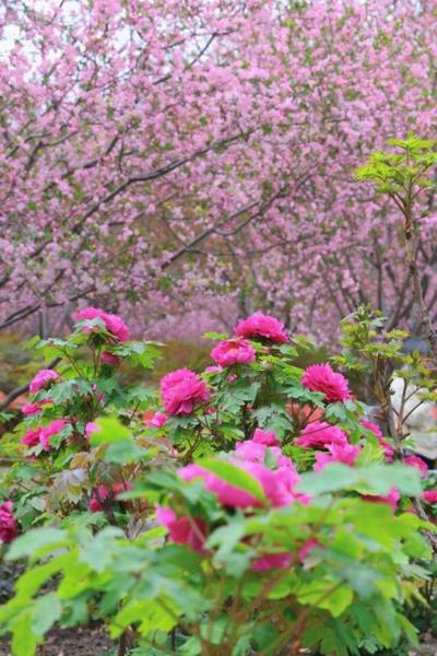 浓艳的红与温柔的粉交织,华贵与清新碰撞,在市中心的闹中取静之处,春风拂面,花香萦绕,不用远行就能邂逅春日美好。后续“香玉”“百园红霞”等品种还将陆续绽放。