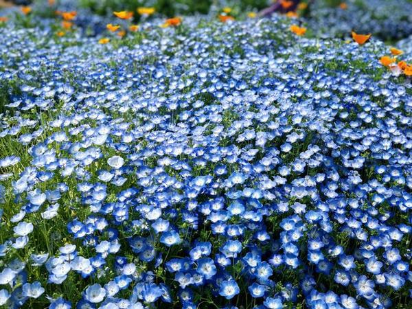 喜林草的故乡在北美西部,它的学名叫Nemophila menziesii,源自古希腊语“nemos”(小树林)与“phileo”(爱),意为“喜爱森林的小草”。