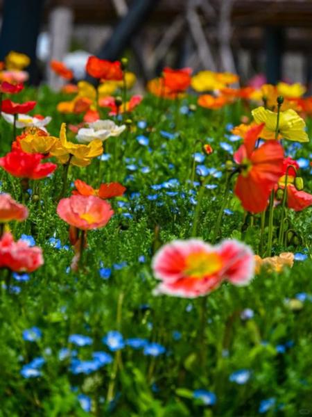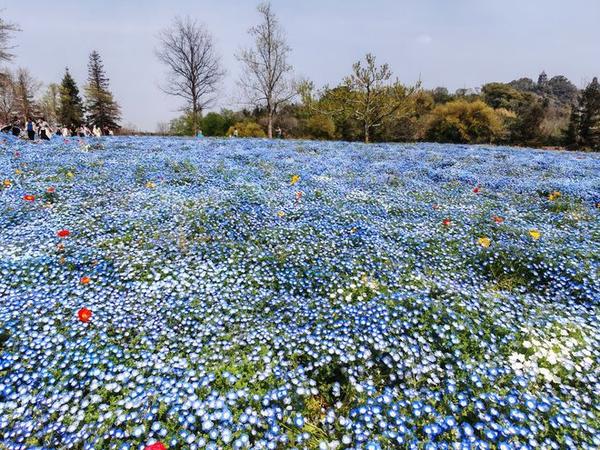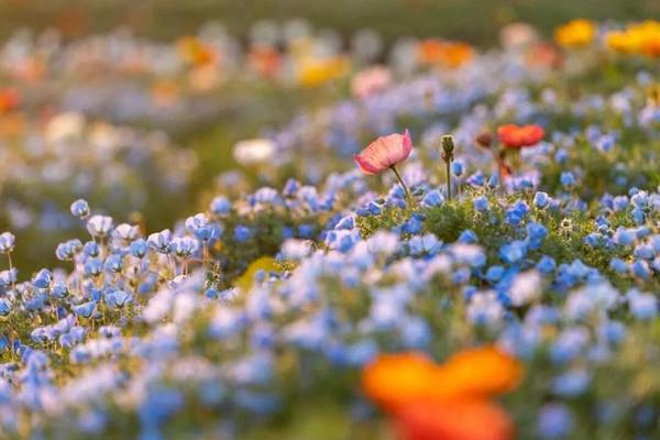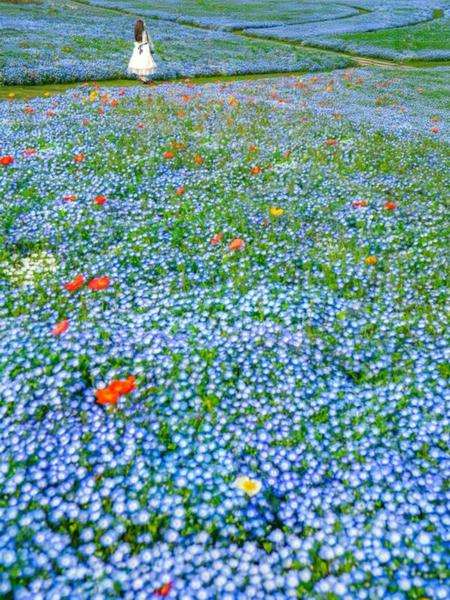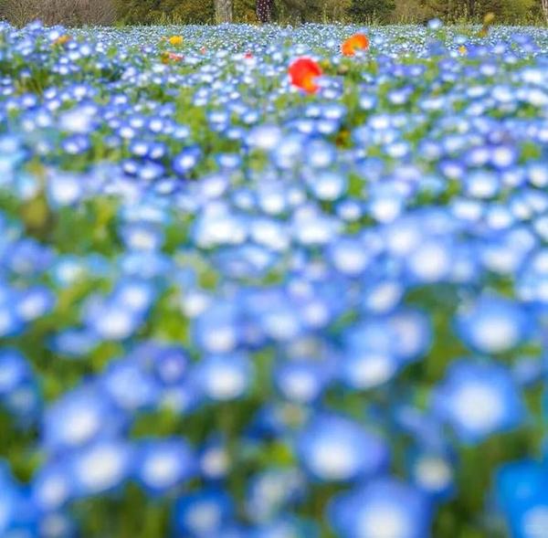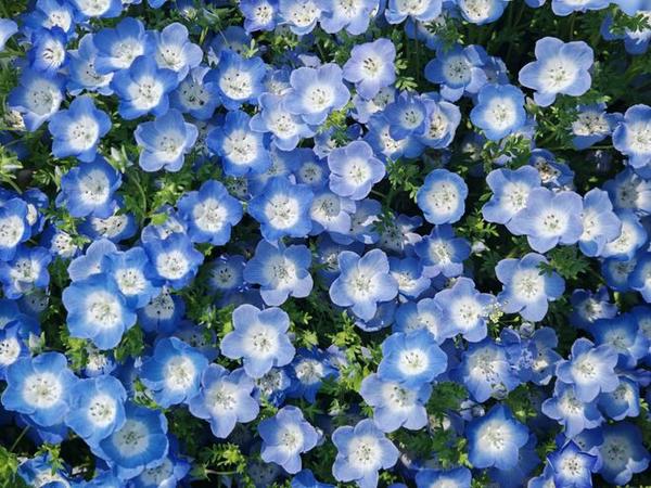 它的英文名“Baby Blue Eyes”(婴儿蓝眼)则更惹人喜爱——那纯净的蓝色花瓣中央一点白,恰似初生婴儿清澈无暇的眼眸,一眼便能治愈你所有的不开心。