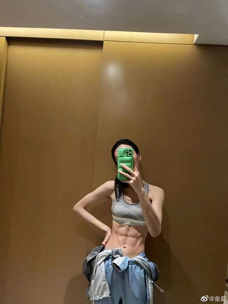 金晨的手机壳是一个十分可爱的绿色皮质套壳,但与之相反的是她浑身棱角清晰的肌肉,特别是腹肌健硕,马甲线明显,将貌美可爱与肌肉阳刚气质融为一体,好似金刚芭比。