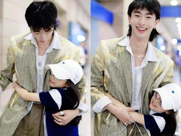 当日,恩利身穿白色背心、衬衫和浅绿色西装,造型帅气阳光。小米粒看到哥哥后,全程搂着哥哥的腰,不愿松手,像是被胶水粘在了哥哥的身上。小米粒披散着长发,戴着棒球帽和墨镜,被时尚的妈妈打扮得同样潮范儿十足。小米粒一直抱着哥哥撒娇,恩利流露出十分宠溺的笑容。