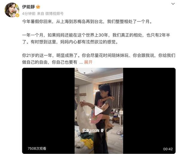 伊能静自称已经做到了从退出到守望到彻底放手,也确实成为了一个尊重孩子的妈妈,文字令人动容。