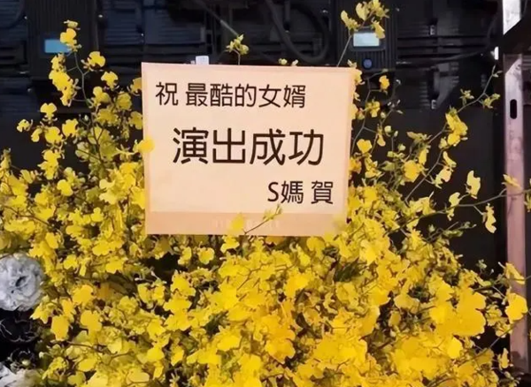 在现场更让具俊晔感到高兴的应该是不仅自己的老婆大S现身支持,小S许雅钧一家和S妈小梅也全家出动,来到现场表达对具俊晔的支持,其中,他的丈母娘、S妈送来了一盆黄色的花篮,上面的卡片写着“祝最酷的女婿演出成功”。