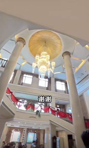 随着博主的镜头,我们可以看到杨子豪宅占地面积非常大,足有三层楼高,吊顶灯非常漂亮,十分气派。
